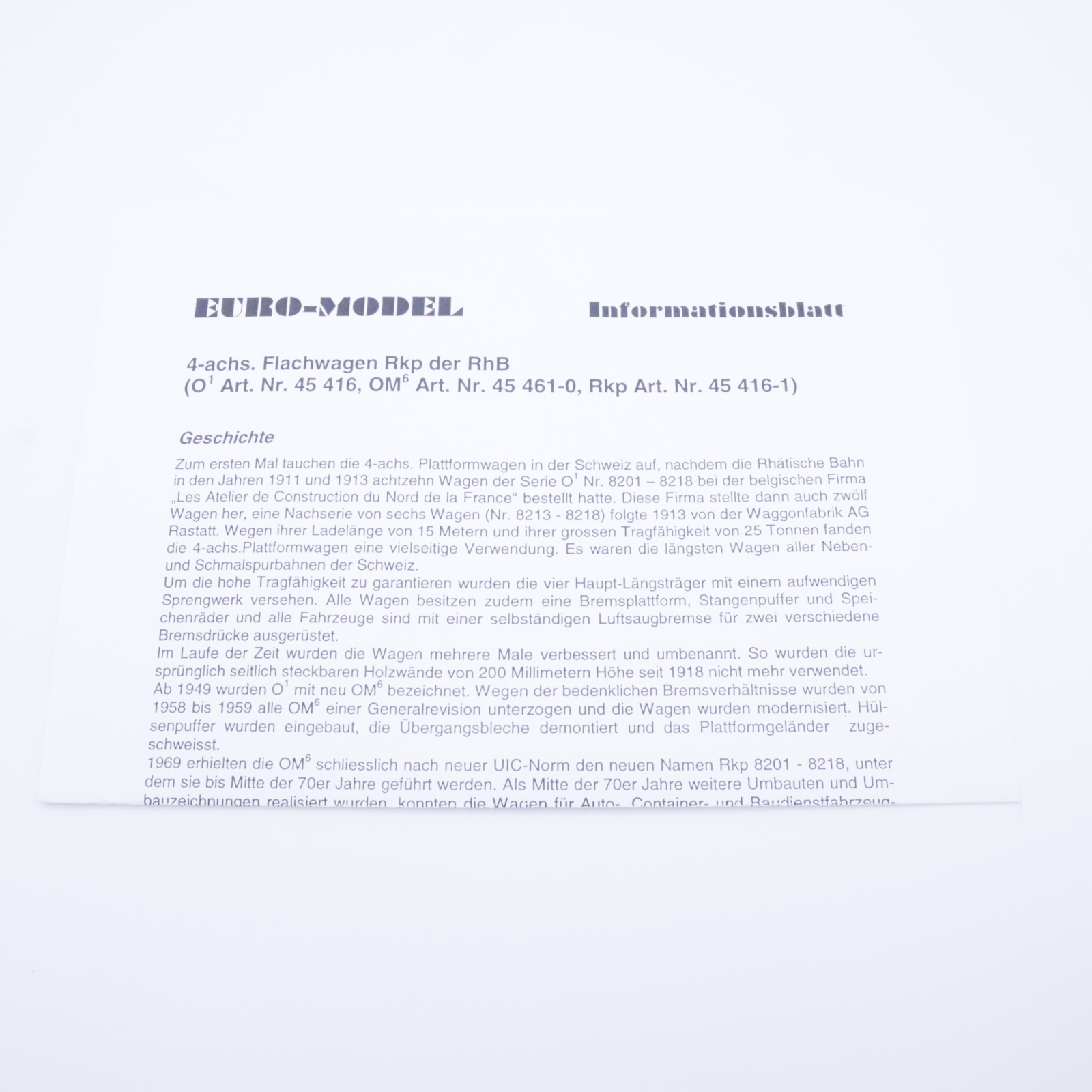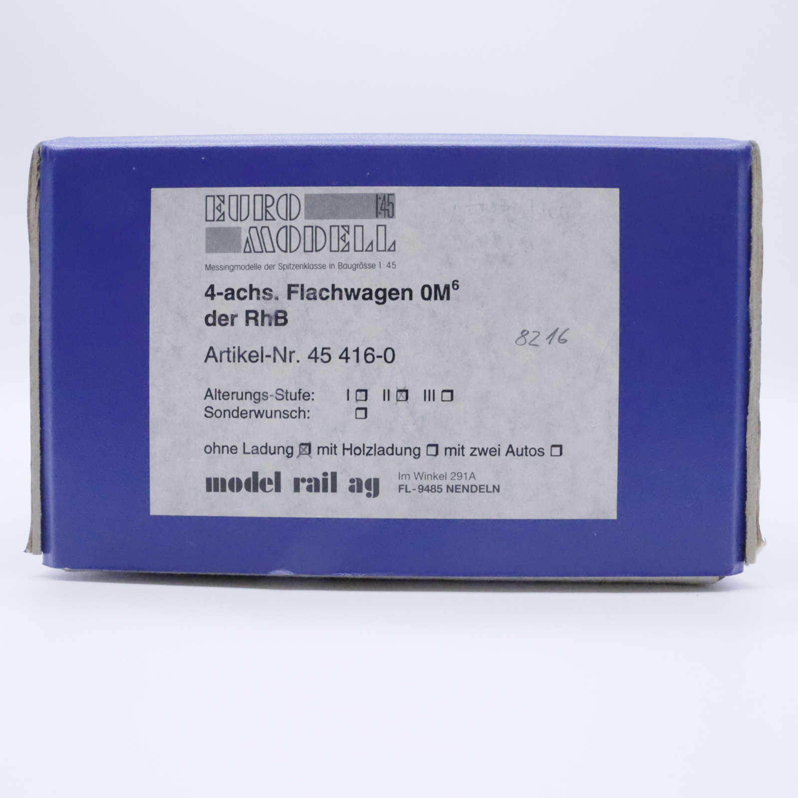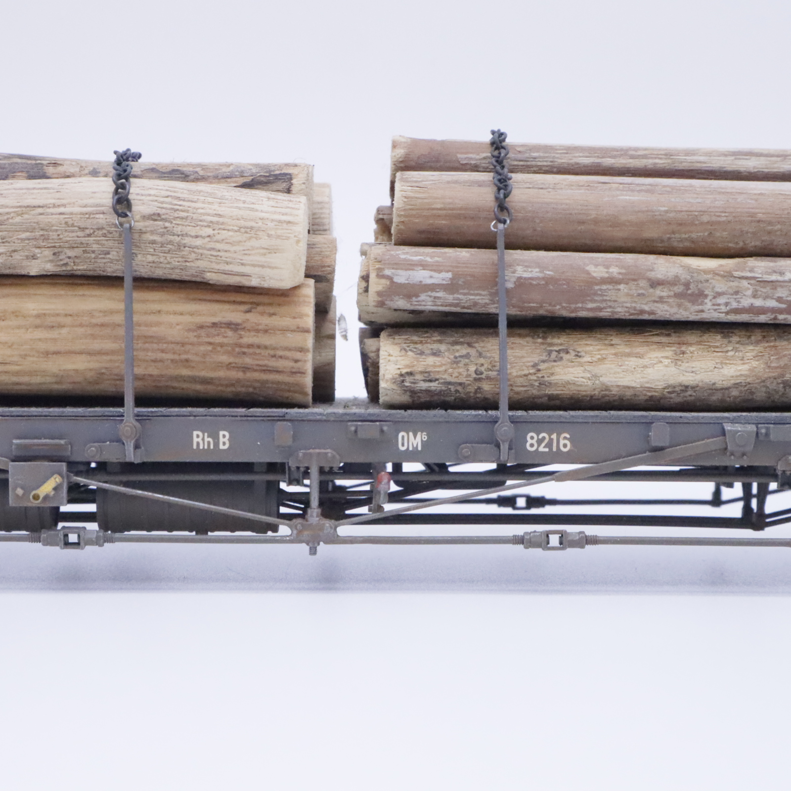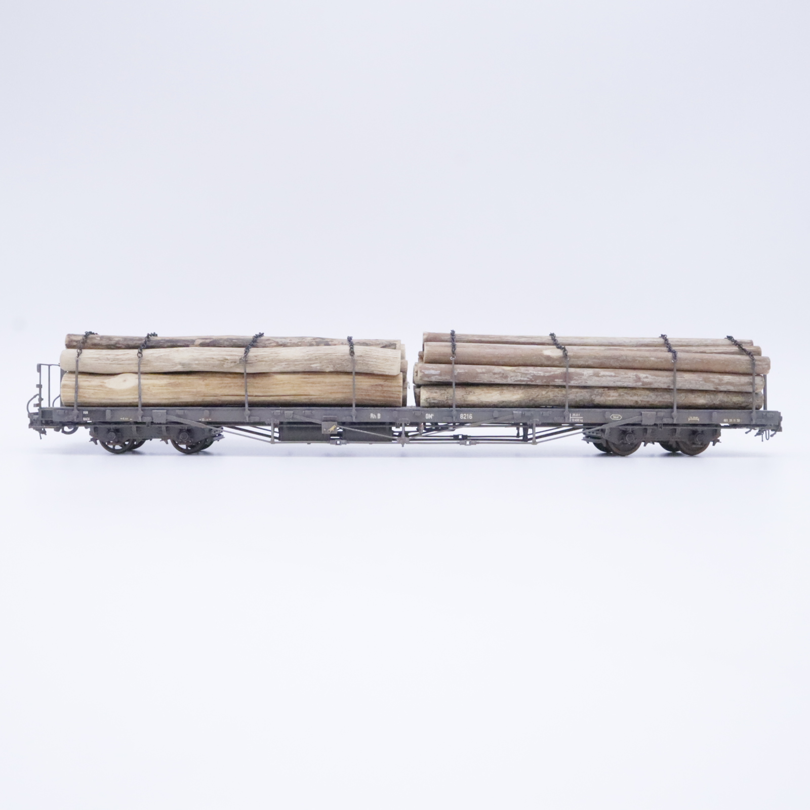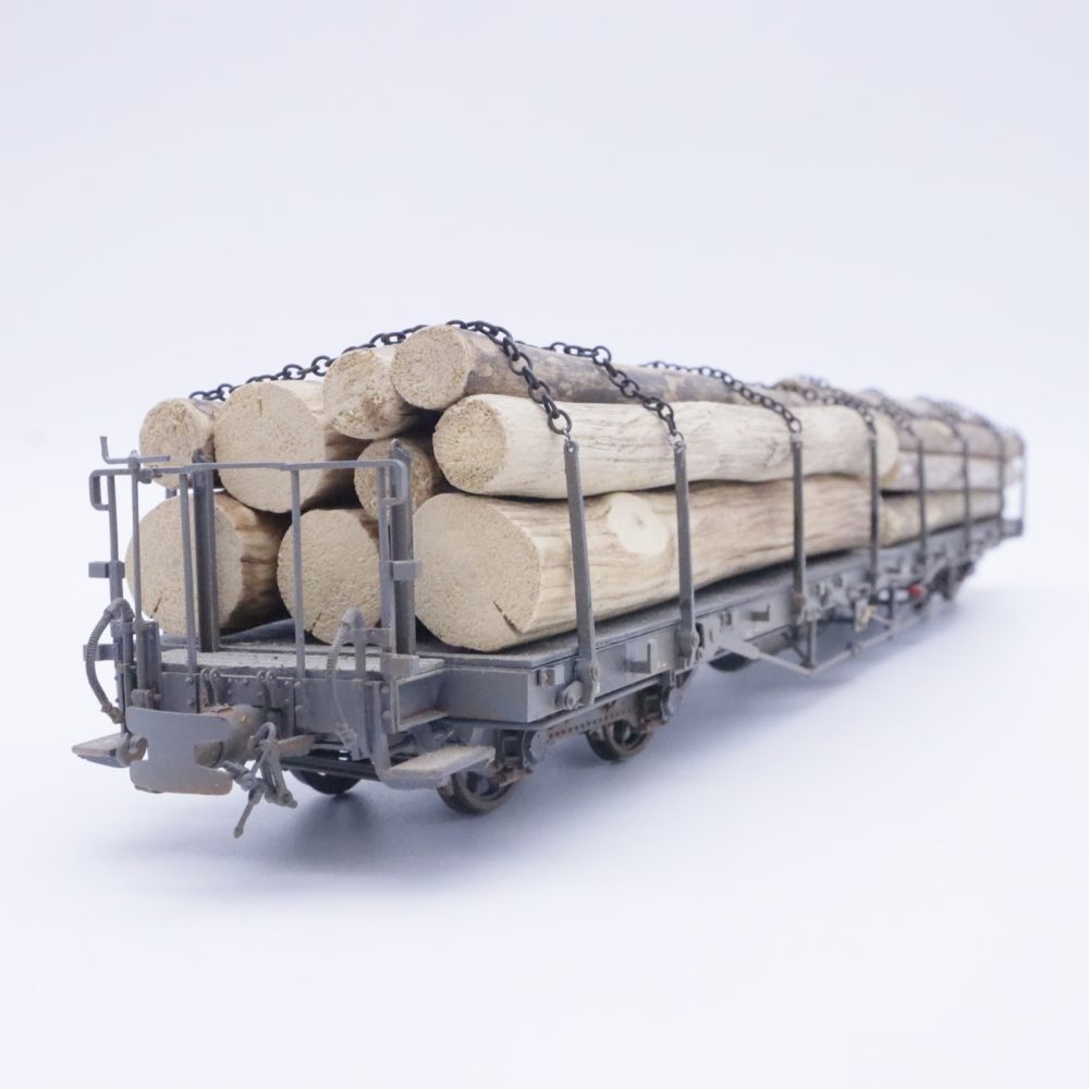 Model Rail 45 416-0 RhB Flachwagen – Holzladung 0M6 8216 REV 20.11.58
